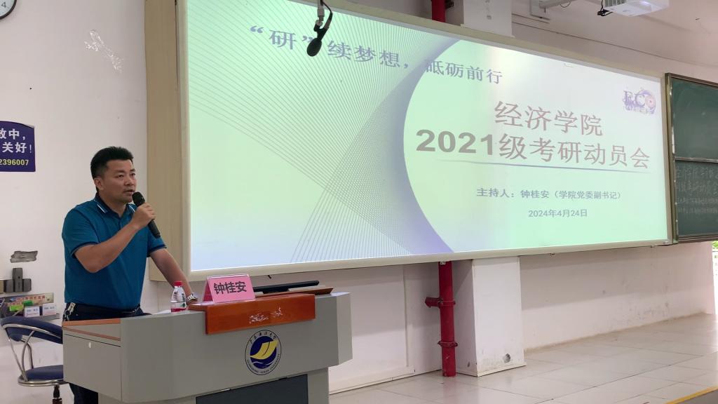为早动员、早部署,帮助考研学生合理规划时间,加强考研自信心,促进高质量就业,4月24日,jbo竞博官网登录在明德楼B5201多媒体室召开了2021级学生考研动员会。学院院长陈伟,正处级辅导员、党委副书记钟桂安,系主任、院办主任、辅导员、班主任以及2021级本科生和二年级研究生参加了会议。