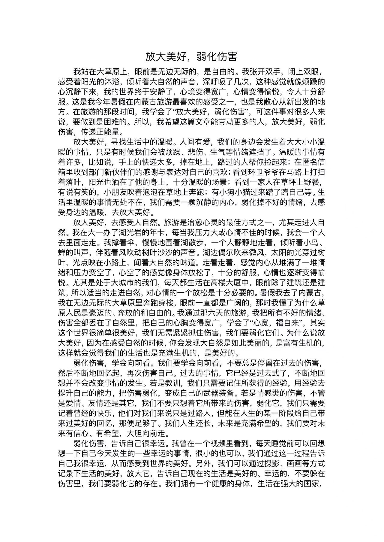 为提高同学们对心理健康的认识和重视,促进自我探索和成长,增强人际交往和解决问题的能力,jbo竞博官网登录于11月24日至11月29日举办了“感受生活美好,健康从‘心’开始”线上征文活动。本次活动面向jbo竞博官网登录全体学生征集作品。