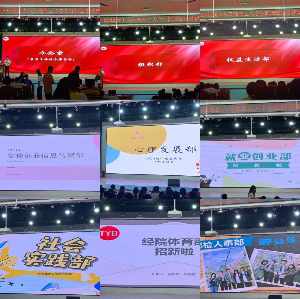 宣讲会时间已过半,大会进入招新宣讲会阶段,为了保证后续团委、学生会、易班等的招新工作顺利进行,各部门都做好了充足的准备。统一的着装和工作牌、完整的PPT介绍以及新颖的宣传视频,宣讲有趣生动又不失工作的专业性,jbo竞博官网登录各工作部门展现出了经院学子的积极自信和良好的精神风貌。在热烈欢迎新生到来的同时,也借此机会让同学们了解了各部门的基本信息,通过招新吸纳更多优秀的人才,注入新鲜的血液。