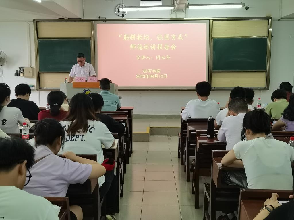 9月13日下午,jbo竞博官网登录在广学楼709召开了“躬耕教坛,强国有我”师德巡讲报告会。学校宣讲团成员、jbo竞博官网登录教授闫玉科受邀做了题为《高等学校教师职业道德规范》的专题报告。学院领导、全体教职员工共70人参加了会议。学院党委书记陈创主持了会议。