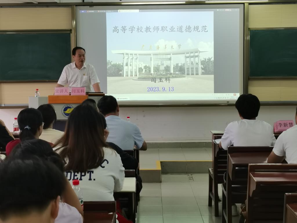 会上,闫玉科围绕“躬耕教坛,强国有我”主题,引经据典、结合案例,深入解读了教师职业道德的定义、教师职业道德的构成、教师职业道德的特点和高等学校教师职业道德规范。他认为,作为一名教师,不仅需要传授知识,更要以身作则,为学生树立人生的榜样,同时,师德也体现在对于教育事业的深切热爱和无私奉献上。