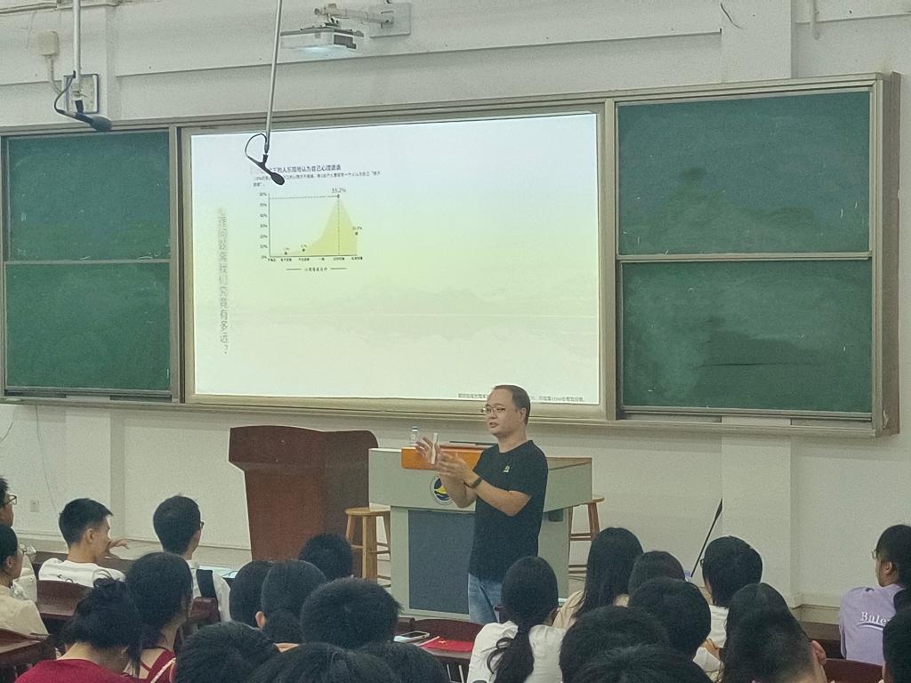 为帮助2023级新生更好地适应大学生活,提高心理健康水平,提高心理适应技能,jbo竞博官网登录联合学校心理健康教育与咨询中心,于9月12日晚上在钟海楼02031举办新生心理健康教育讲座。讲座由jbo竞博官网登录新生辅导员陈家敏主持,心理健康教育与咨询中心周济全老师主讲,全体2023级新生共计330余人参加。