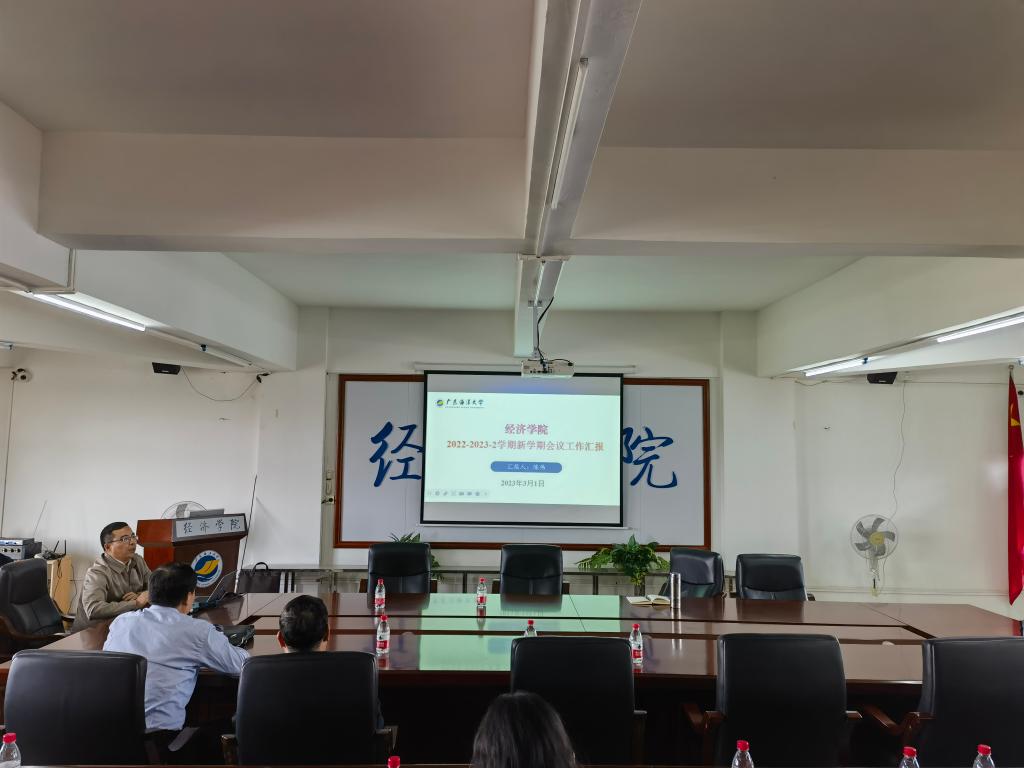 3月1日下午,jbo竞博官网登录在广学楼718会议室召开新学期工作会议,总结2022年工作,部署推进2023年工作。学院党委书记陈创、副院长陈伟、副书记董萍和全体教职工参加。会议由陈创主持。