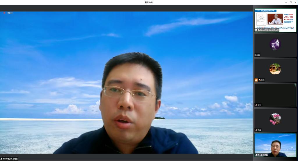 为贯彻落实《高等学校课程思政建设指导纲要》《jbo竞博官网登录课程思政建设工作实施方案》等有关要求,以及结合《jbo竞博官网登录2022年师德建设主题教育月活动方案》的具体活动部署,学院邀请了西南大学副教授、教务处副处长易鹏于10月12日下午在线上作题为“如何开展课程思政建设”专题报告会。报告会由副院长陈伟主持,学院全体教职工共50余人认真听取了易鹏副教授的报告。