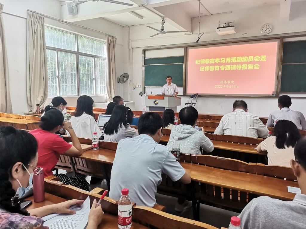 为深入贯彻落实学校2022年纪律教育学习月活动方案要求,9月14日下午,jbo竞博官网登录在明德楼101课室召开纪律教育学习月活动动员暨纪律教育专题辅导报告会。学院全体教职工参加了会议。会议由学院党委书记陈创主持。