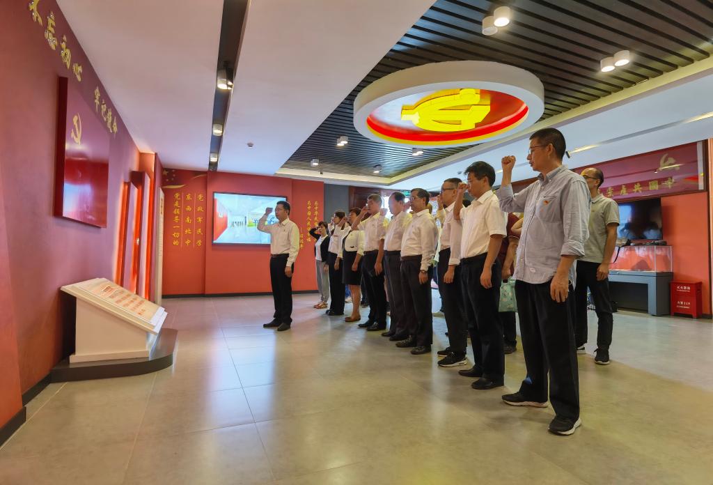 全体党员干部在讲解员的带领下先后参观了陈瑸故居、陈瑸纪念馆、陈瑸诗廊、思贤亭、陈瑸廉政名言警句石碑、家风馆、初心堂、陈瑸廉政史迹展览馆等。每到一处,大家都驻足细看,认真聆听陈瑸清正廉明、勤躬政事、造福一方百姓等情况介绍。通过参观学习,全体党员干部看到了一个捐奉修城,服务百姓的陈瑸;看到了一个为国抡才,举贤推优的陈瑸;看到了一个孑身为官,远离家人的陈瑸。观看陈瑸事迹专题纪录片《国家祥瑞天下清官》,更是让大家感受到一代清官陈瑸“知谋国而不知营家,知恤民而不知爱身”清廉卓绝的生动形象,心灵深受洗礼和净化。随后,在学院党委书记肖文辉的带领下,全体党员重温了入党誓词。