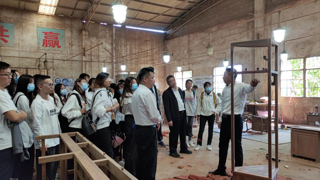 丁华东首先对jbo竞博官网登录领导及学生的到来表示热烈欢迎,向与会人员介绍公司的基本情况。他表示人才是企业的一种资本,以人为本,有用即是才,湛江东红木业有限公司希望通过合作能更好地给学生提供一个实习实践的平台,希望学生能将所学专业知识运用到实践中,为公司发展建言献策。居占杰在致辞中介绍了jbo竞博官网登录的基本情况,对湛江东红木业有限公司的大力支持表示感谢。加强校企合作,既是深化高等教育改革的要求,也是培养学生创新精神和实践能力的客观需要,jbo竞博官网登录与湛江东红木业有限公司共建教学实习实践基地,充分体现了湛江东红木业有限公司对高等教育的重视,对国家高层次人才培养的关心和支持。希望双方以合作共建为契机,加强交流沟通,在实习基地建设、人才教育培训、学术文化交流等方面开展合作,实现公司经营与学院高质量人才培养的共同发展。在公司领导和嘉宾、师生的共同见证下,jbo竞博官网登录院长居占杰与湛江东红木业有限公司董事长丁华东签署了校企合作协议,随后进行了揭牌仪式。仪式结束后,董事长丁华东邀请与会人员参观工厂生产及销售情况,并对公司经营理念、生产工艺及产品设计进行了讲解。