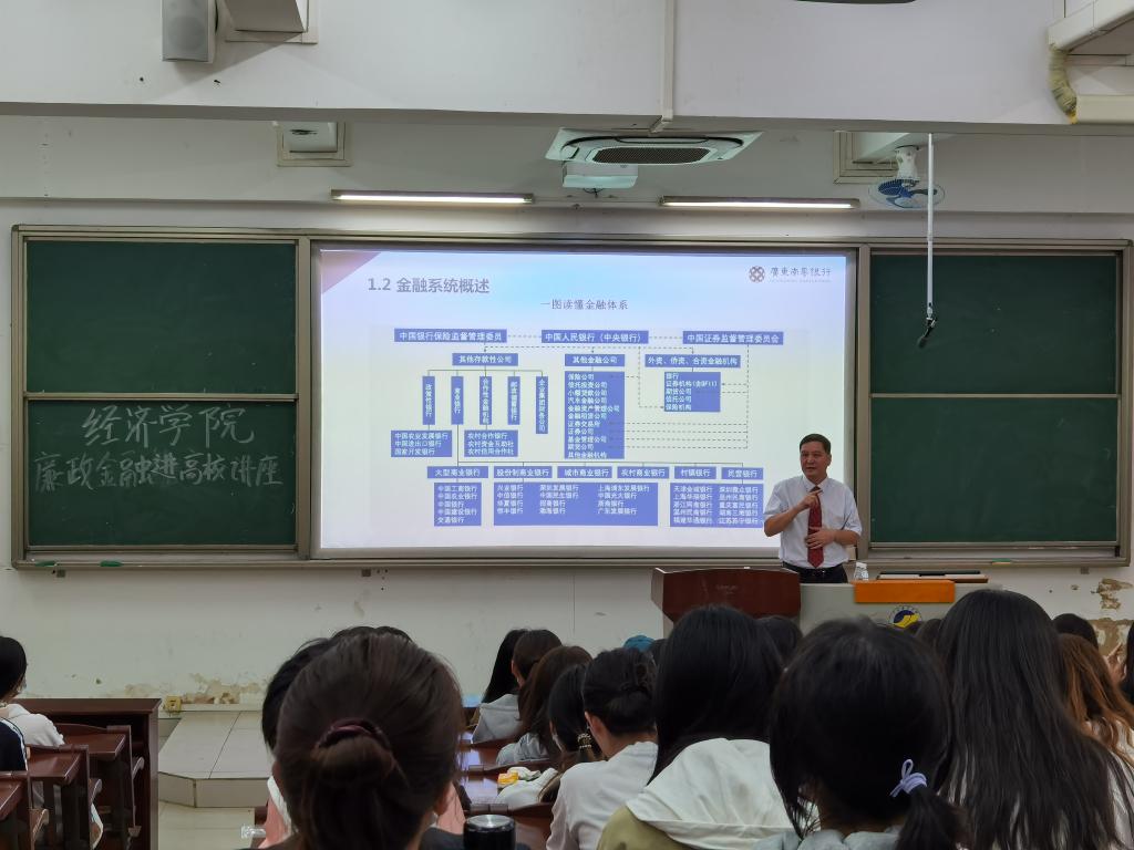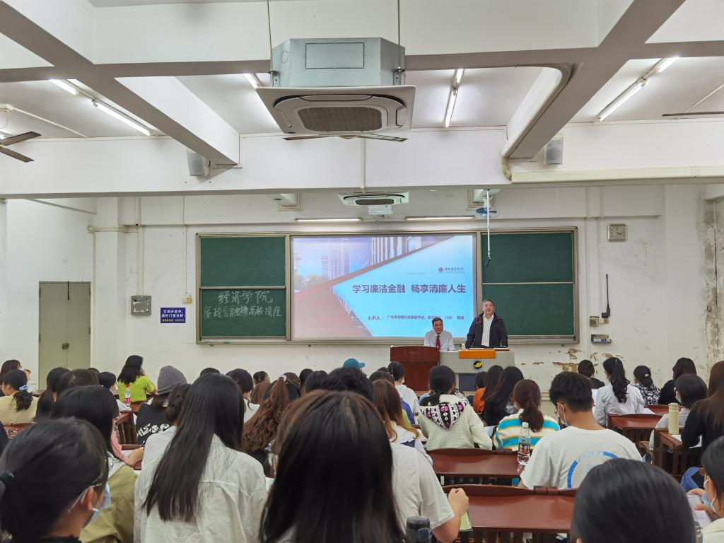 为深入开展清廉金融文化建设,构建清廉金融文化生态,进一步引导学生走好未来人生职业发展之路,10月13日下午,湛江银保监分局与jbo竞博官网登录在湖光校区钟海楼03020教室共同举办了一场“清廉金融三课”进高校活动。湛江银行同业公会会长、南粤银行党委副书记、副董事长、行长陈武作《学习廉洁金融,畅享清廉人生》主题报告。学院125名本科生参加,报告会由院长居占杰主持。