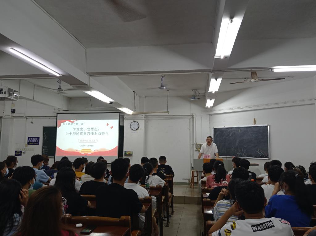 10月11日晚7时,jbo竞博官网登录院长居占杰教授在主楼226面向2021级新生班委上了一堂生动的思想政治教育课。2021级新生班委共108人聆听了该次课程。