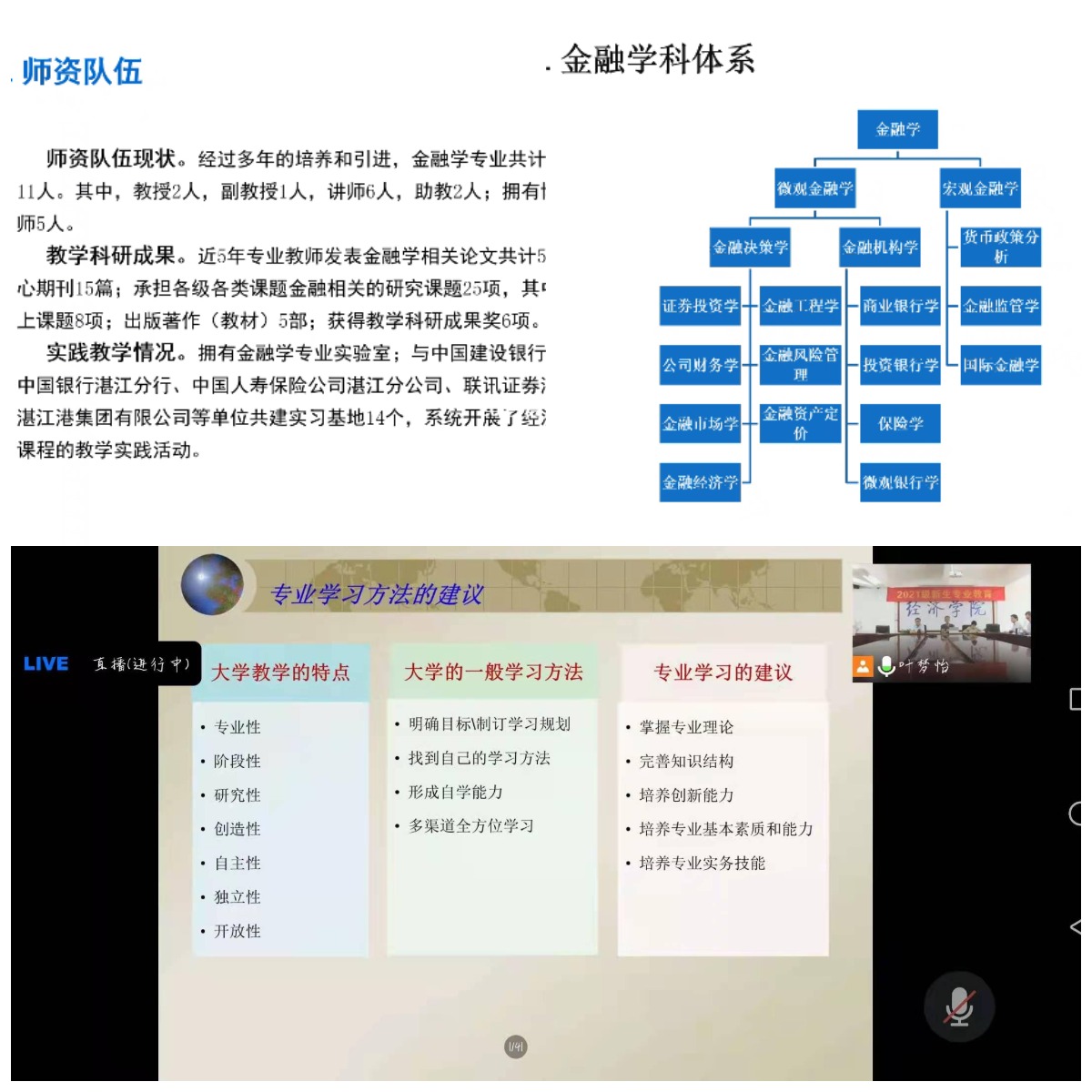 9月14日上午,jbo竞博官网登录面向2021级新生开展了专业教育,由经济系、国贸系、金融系负责分三个时间段组织实施。会议采用线上线下结合的形式,主会场设在主楼718室,全体2021级新生通过腾讯会议在线参加。