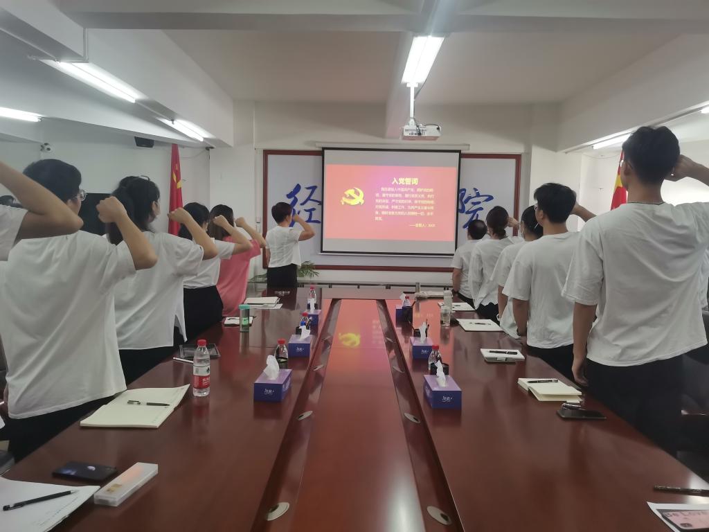 在中国共产党成立100周年之际,组织新发展党员入党宣誓是jbo竞博官网登录党委党史学习教育的重要内容。本次入党宣誓仪式由国贸系学生党支部书记李文河主持,辅导员吴金年监誓。