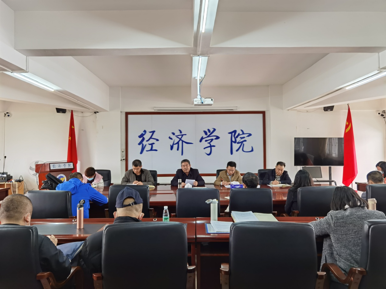 居院长首先对全院工作进行了回顾。他指出,在学校党委的坚强领导下,以习近平新时代中国特色社会主义思想为指导,全面贯彻党的十九大和十九届四中、五中全会精神,全院凝心聚力、奋力进取,在人才培养、教学科研、专业学科建设、党建和思想政治工作等方面取得显著进步。主要表现在:教学工作平稳运行,教学质量不断提高;专业建设迈上新高度,经济与金融专业获得教育部批准,2020年秋季开始招生,居占杰教授主持的经济学省级特色专业建设项目,完成全部建设目标,通过结题验收,为建设省级一流专业和开展国际商科认证打下了坚实基;创新创业教育取得新业绩等共11个方面进行了总结。在肯定成绩的同时,也指出了目前学院事业发展中存在的问题,主要包括:在学深悟透做实习近平新时代中国特色社会主义思想方面还有差距,意识形态领域还存在不少问题,党建引领中心工作能力有待进一步提升;教学质量与人才培养质量要求还存在差距;专业建设水平与国家标准要求存在差距等7各方面的问题,同时提出了相应的改进措施。肖文辉书记就如何坚做好2021年春节和寒假期间学院意识形态和安全稳定工作做出了要求:(1)提高政治站位充分认识做还安全稳定工作的重要性;(2)加强重要阵地管理;(3)强化学院教职工出国境管理等7个方面的工作。对具体的工作分工也作出了安排。最后祝各位教职工假期愉快!