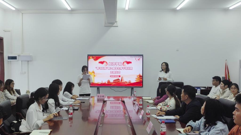 10月30日下午,jbo竞博官网登录在文科楼3号楼715会议室举行了第九期“青马工程”学生骨干培训班开班,学院正处级辅导员、党委副书记钟桂安,团委书记兼青马班班主任叶梦怡、辅导员温莉莉、陈家敏、李斯雯、肖启映及青马班组委会成员、全体学员参加了仪式。