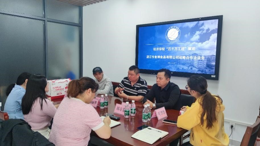 为了扎实推进“百千万工程”与“双百行动”,11月7日,jbo竞博官网登录在文科楼3号楼710会议室举行“百千万工程”赋能农产品企业战略合作洽谈会。会议由学院副院长杨丽华主持,经济系教师、广东省“百千万工程”农村科技特派员第二轮重点派驻团队负责人周奇美、国贸系教师吕晶晶,团委书记叶梦怡,湛江市食神食品有限公司董事长曹阳霞、副总经理刘国良和电商经理王泽宇参加了会议。