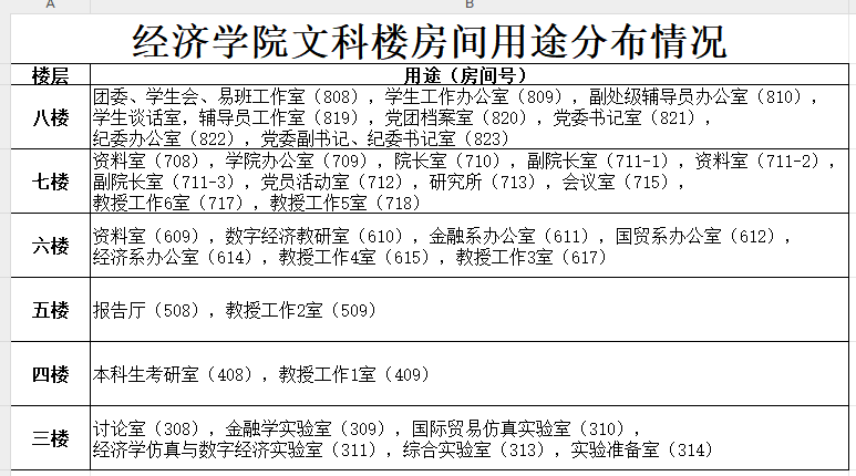 【房间用途分布】jbo竞博官网登录文科楼房间用途分布情况