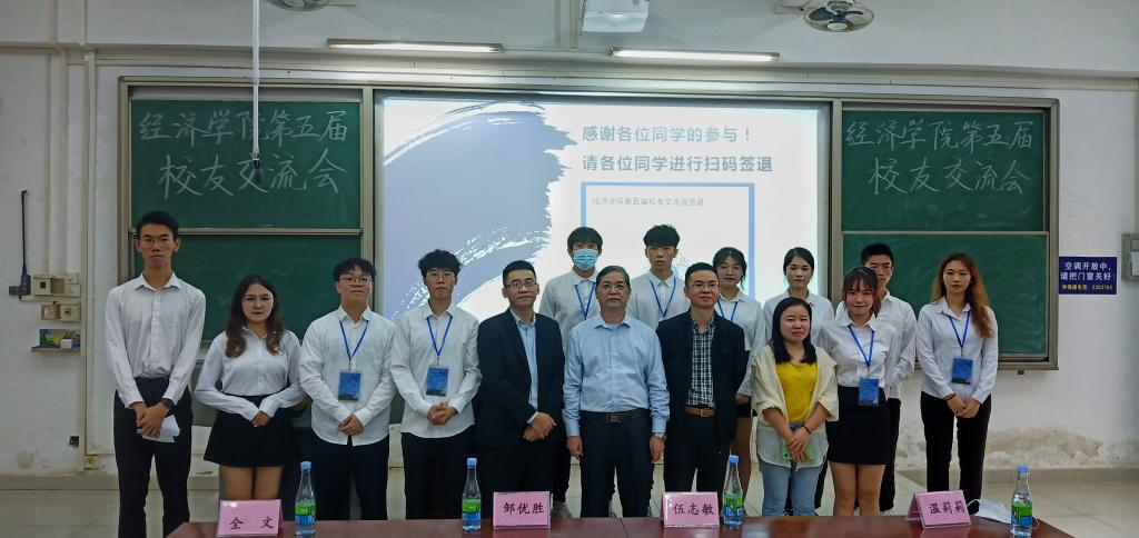 10月24日下午,jbo竞博官网登录在钟海楼03022举办第五届校友交流会。此次交流会邀请了湛江广发证券营销部总经理邹优胜、平安保险有限公司湛江养老险总经理伍志敏两位校友参加,交流会由全文老师主持,学院辅导员、学生250多人参加本次交流活动。